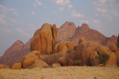 Having said that it was a rest day I was up at 05:00 to go to a koppie just outside of Spitzkoppe which should have had fantastic views of the mountains. The views were great but the weather wasn't playing ball and we had clouds, the first clouds that we have seen for two weeks. At 05:30 it is still pitch black but I was determined to be there for the pre-dawn, finding the koppie proved to be quite difficult because there are no signs and the headlights on the road mean that everything else is invisible. Finally found the koppie, funny to think that one could misplace a mountain, and then clambered up it in the dark with my tripod and camera case. This camera case is wonderful in many ways but climbing a koppie in the dark isn't one of them. Finally got to the summit and as day dawned ... cloud so no nice rays of sunshine illuminating the distant mountains and after waiting until 07:30 I gave up and headed for home.